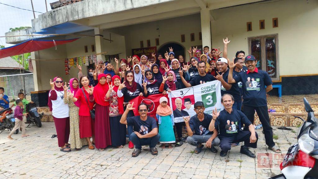 Foto: Bu Nyai (berdiri tengah sebelah kanan kaos merah) bersama warga penerima manfaat bantuan sembako