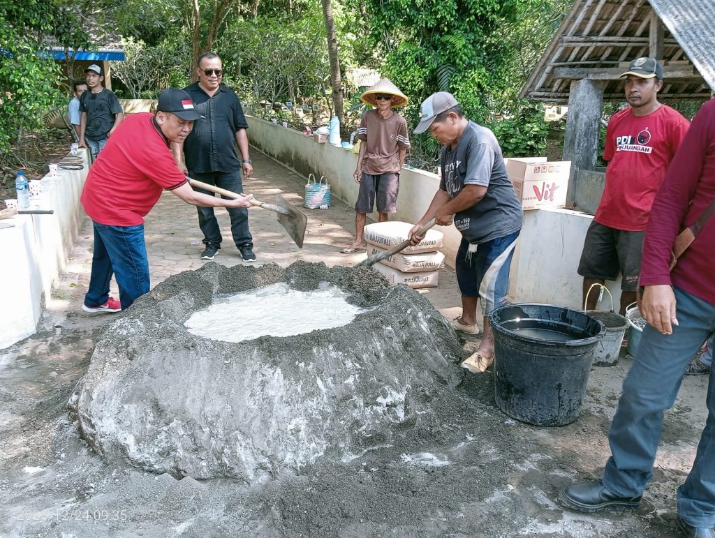 Kabupaten Cilacap – Mengisi liburan yang bermanfaat, anggota Komisi A Fraksi PDI Perjuangan DPRD Kab. Cilacap, Sawino turut hadir dan terlibat langsung dalam kerja bakti lingkungan warga Desa Sidayu, Kec. Binangun, berupa pengecoran akses jalan di Gerbang Makam Desa Sidayu.