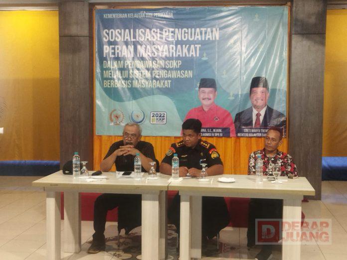 Kabupaten Banyumas – Kementrian Kelautan dan Perikanan melalui Dinas Sumber Daya Kelautan dan Perikanan (SDKP) Kab. Cilacap, Erik Sostenes, serta Anggota DPR RI, Fraksi PDI Perjuangan, H. Sunarna, S.E., M.Hum., mengadakan Sosialisasi Penguatan Peran Masyarakat Dalam Pengawasan Sumber Daya Kelautan dan Perikanan (SDKP), melalui Sistem Pengawasan Berbasis Masyarakat. Giat tersebut dilaksanakan di Pringgading Resto, Jl. DI Pandjaitan Purwokerto, Kamis (17/11/2022).