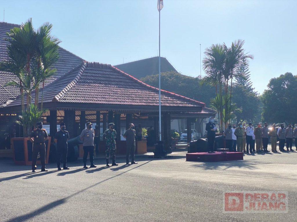 Kabupaten Purbalingga – Penerapan PPKM Darurat yang berlangsung mulai 3-20 Juli 2021, diharapkan dapat memberikan dampak yang signifikan terhadap penurunan kasus Covid-19 di Kab. Purbalingga. Hal itu disampaikan oleh Bupati Purbalingga, Dyah Hayuning Pratiwi, saat memberi pengarahan dalam Apel Gelar Pasukan PPKM Darurat Kab. Purbalingga, Operasi Aman Nusa II Candi 2021, yang dilaksanakan di Halaman Pendopo Dipokusumo, Senin (5/7/2021).