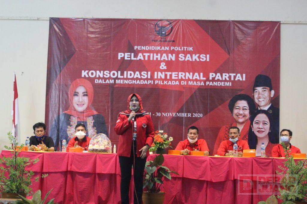 Sambutan Ketua DPC PDI Perjuangan Kab. Klaten, Hj. Sri Mulyani dalam rangkaian kegiatan pelatihan saksi yang diselenggarakan oleh BSPN Cabang Klaten
