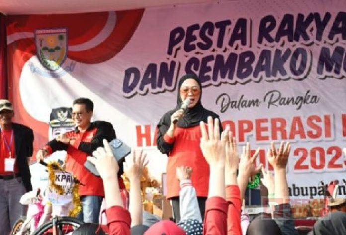 Kabupaten Purbalingga – Peringatan Hari Koperasi Ke-76 di Purbalingga dirayakan dengan Pesta Rakyat dan Sembako Murah khususnya untuk anggota/pengurus Koperasi se-Purbalingga. Bupati Purbalingga, Dyah Hayuning Pratiwi atau yang akrab disapa Bu Tiwi berharap agar koperasi di Kabupaten Purbalingga semakin maju.