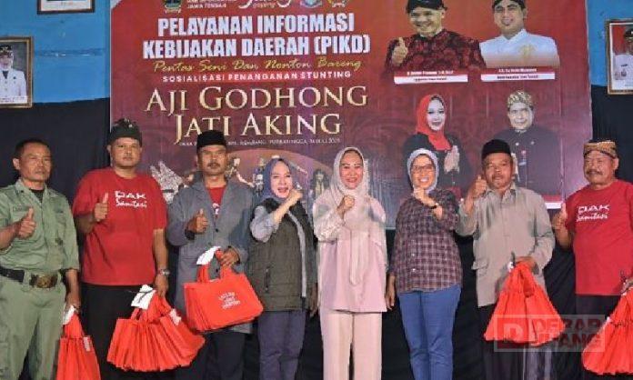 Kabupaten PURBALINGGA – Bupati Purbalingga, Dyah Hayuning Pratiwi atau yang akrab disapa Bu Tiwi menyampaikan apresiasinya kepada Dinas Komunikasi dan Informatika (Diskominfo) Jawa Tengah yang turut membantu penanganan stunting di Purbalingga, khususnya di Desa Panusupan, Kecamatan Rembang. Wujud sinergi itu adalah melalui Pelayanan Informasi Kebijakan Daerah (PIKD) berupa pentas seni dan nonton bareng sosialisasi penanganan stunting.