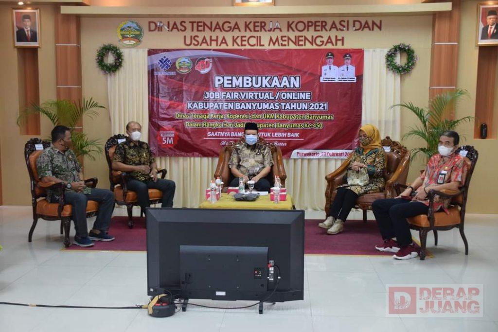 Kabupaten Banyumas – Sebagai upaya untuk menyalurkan tenaga kerja, Dinas Tenaga Kerja, Koperasi dan Usaha Kecil dan Menengah (Dinarkop dan UKM) Kab. Banyumas bekerjasama dengan Kementerian Tenaga Kerja (Kemenaker). Kerjasama tersebut dilaksanakan dengan menggelar Job Fair 2021 secara virtual, melalui website www.jobfair.kemenaker.go.id., yang dibuka selama dua hari, yaitu, Selasa-Rabu, (23-24/2/2021).