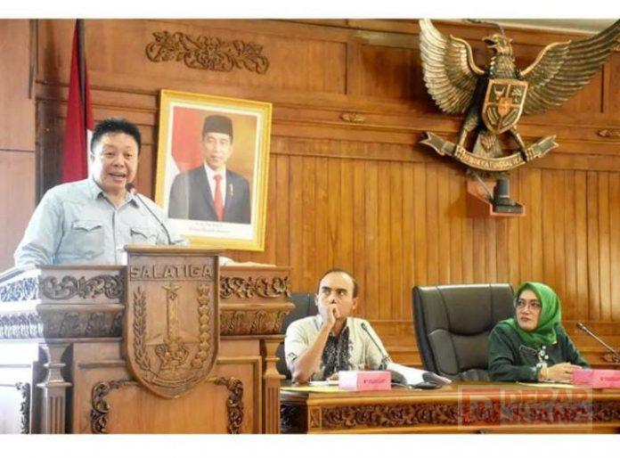 Kota Salatiga – Ketua DPRD Kota Salatiga, Dance Ishak Palit, yang akrab disapa Bung Dance memberikan pengarahan pada sosialisasi Pelaksanaan dan Tata Cara Penanganan Hewan Kurban kepada Tarkim Masjid, serta penyuluh agama. Kegiatan tersebut dilaksanakan di ruang Bhineka Tunggal Ika, Kamis(16/6/2022).
