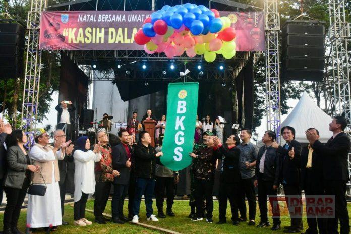 Kota Salatiga – Ketua DPRD Kota Salatiga Dance Ishak Palit, M.Si bersama Anggota Komisi C DPRD Bonar Novi Priatmoko, S.H mengikuti Ibadah Natal Bersama ribuan Umat Kristiani se-Kota Salatiga di Alun-Alun Lapangan Pancasila, Senin (25/12/2023).