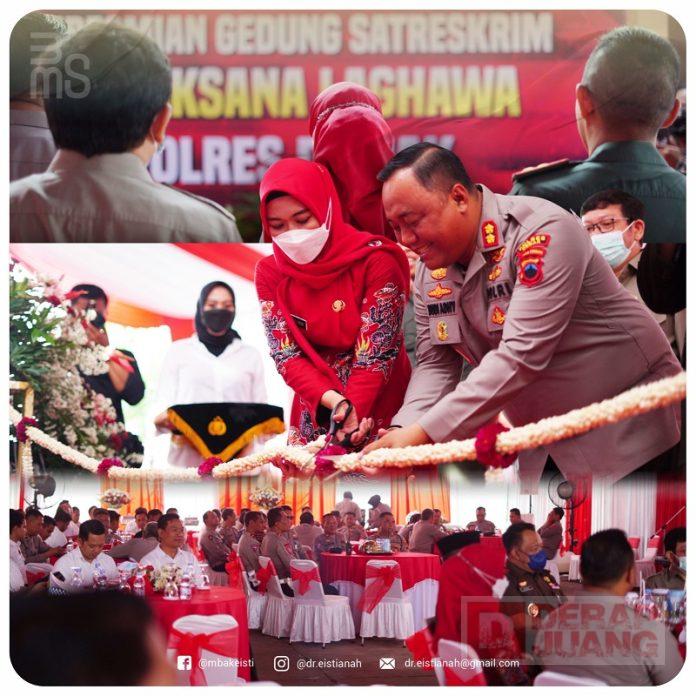 Kabupaten Demak – Bupati Demak dr. Hj. Eisti’anah, didampingi jajaran Forkompinda bersama Kapolres Demak meresmikan Gedung Wicaksana Laghawa Polres Demak, bertempat di Mapolres Demak.