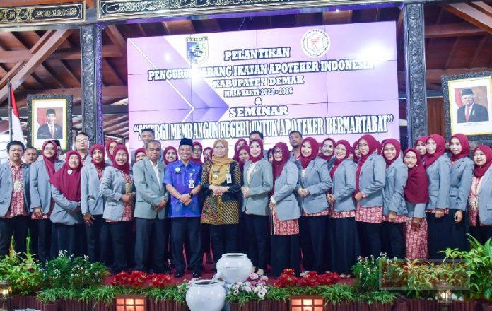 Kabupaten Demak – Bupati Demak, dr. Hj. Eisti’anah menghadiri Pelantikan dan Seminar Keapotekeran Ikatan Apoteker Indonesia (IAI) Pengurus Cabang Kab. Demak yang mengusung tema “Sinergi Membangun Negeri untuk Apoteker Bermartabat”.