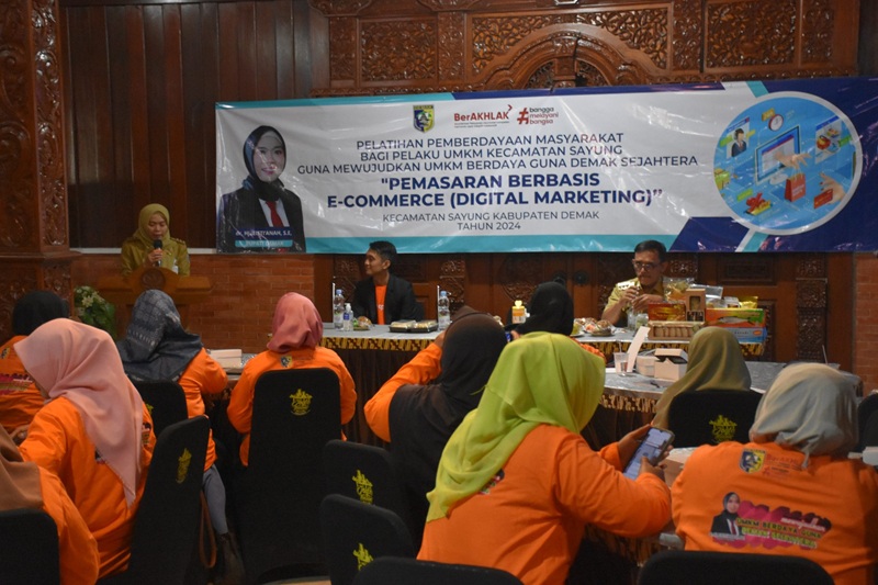 Hal tersebut diungkapkan Bupati yang akrab disapa Mbak Eisti itu saat menghadiri Pelatihan UMKM dengan tema Pemasaran berbasis e-Commerce (Digital Marketing), Senin (22/07/2024). Pelatihan yang diselenggarakan di Joglo Kembar Wisma Halim tersebut diikuti oleh pelaku UMKM se-Kec. Sayung.