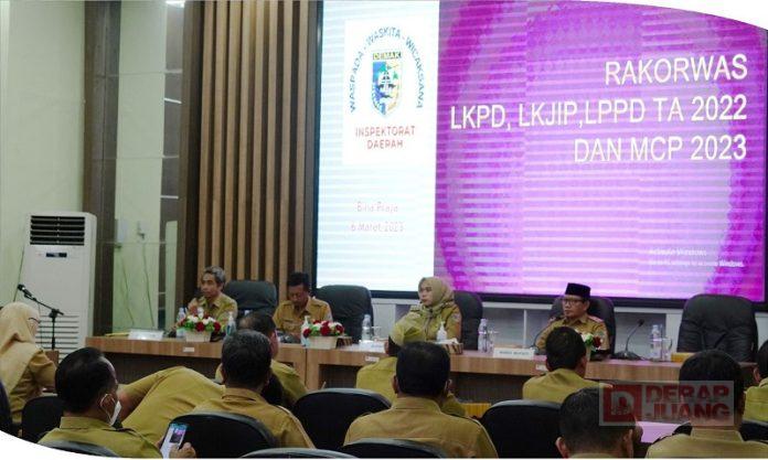 Kabupaten Demak – Bupati Demak, dr. Hj. Eisti’anah memimpin Rapat Koordinasi Pengawasan (Rakorwas) LKPD, LKJIP, dan LPPD TA 2022 serta MCP 2023 yang berlangsung pada Senin (06/03/2023).