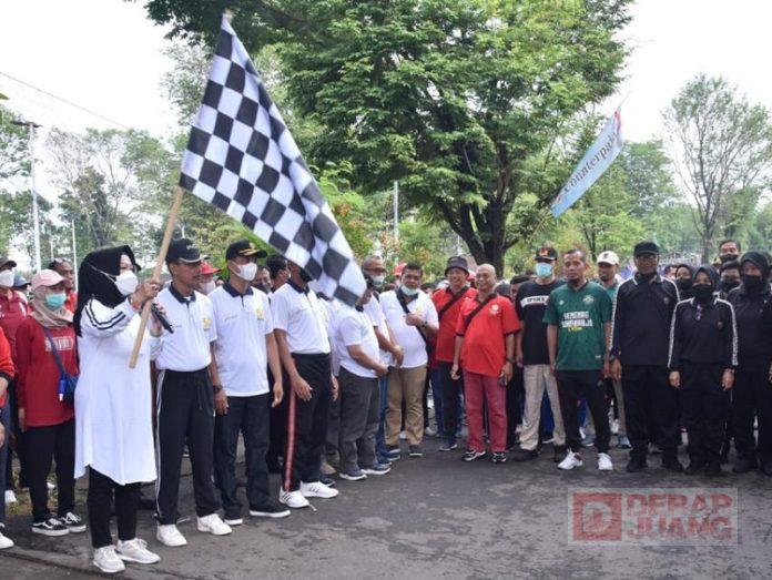 Kabupaten Sukoharjo – Dalam rangka memperingati HUT KORPRI Ke-51, Pemkab Sukoharjo menggelar jalan sehat massal di kompleks Stadion Gelora Merdeka Jombor, Jumat (18/11/2022). Jalan sehat massal tersebut dilepas oleh Bupati Sukoharjo, Etik Suryani dan dihadiri Wakil Bupati Agus Santosa serta pejabat di lingkungan Pemkab Sukoharjo.