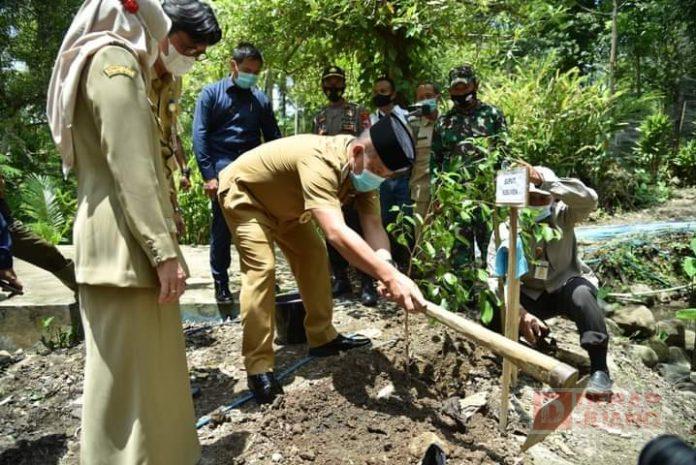 Kabupaten Kebumen – Bupati Kebumen, Arif Sugiyanto, bersama Wakil Bupati Kebumen, Ristawati Purwaningsih meluncurkan program yang diberi rnama “Nandur Wit Nggo Anak Putu”. Launching program pelestarian lingkungan yang dihadiri oleh Sekda Kebumen, Ahmad Ujang Sugiyono, Kepala OPD, Camat, serta sejumlah Kepala Desa, dilaksanakan di Pendopo Rumah Dinas Bupati Kebumen, Senin, (15/3/2021).
