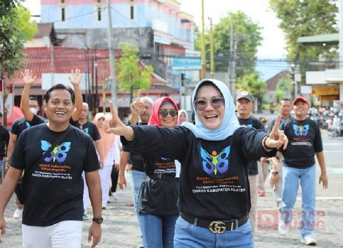 Kabupaten Klaten – Dinas Kesehatan Klaten menggelar Jalan Sehat dalam rangka memperingati Hari Kesehatan Nasional Ke-58 tahun 2022. Peringatan dengan tema ‘Bangkit Indonesiaku, Sehat Negeriku’ tersebut digelar di Halaman Pendopo Pemerintah Kabupaten Klaten, Minggu (06/11/2022).
