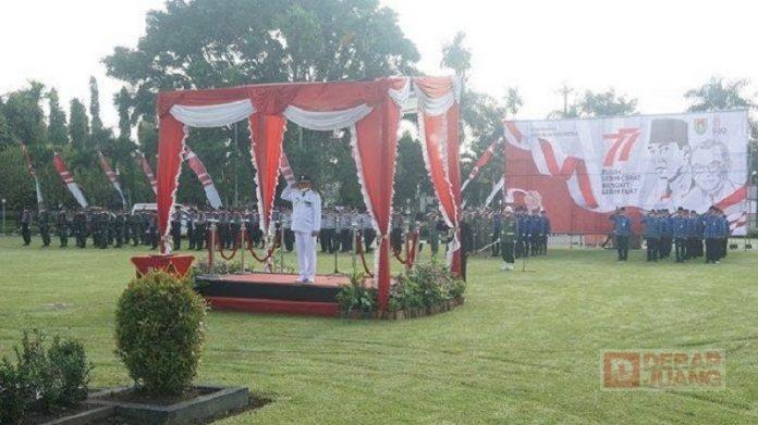 Kabupaten Magelang – Pemerintah Kabupaten Magelang menggelar upacara peringatan HUT Kemerdekaan RI Ke-77 bersama jajaran Forkompimda, instansi, organisasi, dan OPD di Halaman Setda Kabupaten Magelang, Rabu (17/8/2022).