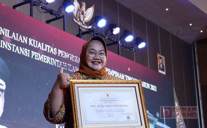 Kabupaten Sragen – Pemkab Sragen meraih penghargaan dari Komisi Aparatur Sipil Negara (KASN) Republik Indonesia atas kinerja dalam proses pengisian Jabatan Pimpinan Tinggi (JPT) pertama atau lelang jabatan eselon II kategori baik, Jumat (7/10/2022).