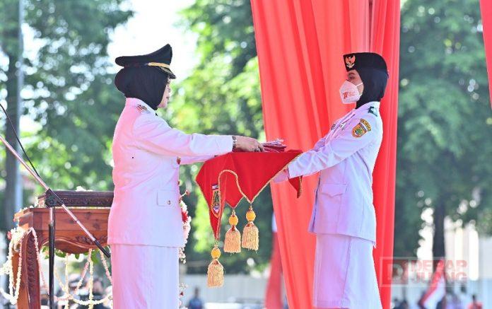 Foto: Bupati Sukoharjo Menyerahkan Bendera Merah Putih