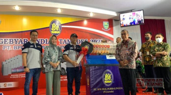 Kabupaten Purbalingga – Retnowati, salah satu warga Jalan Jend. Soedirman Purbalingga mendapatkan hadiah utama Gebyar Undian Tamades 2022 PT. BPR BKK Purbalingga (Perseroda). Undian dilakukan oleh Bupati Purbalingga, Dyah Hayuning Pratiwi, di Backing Hall Kantor PT. BPR BKK Purbalingga, Sabtu (19/11/2022).