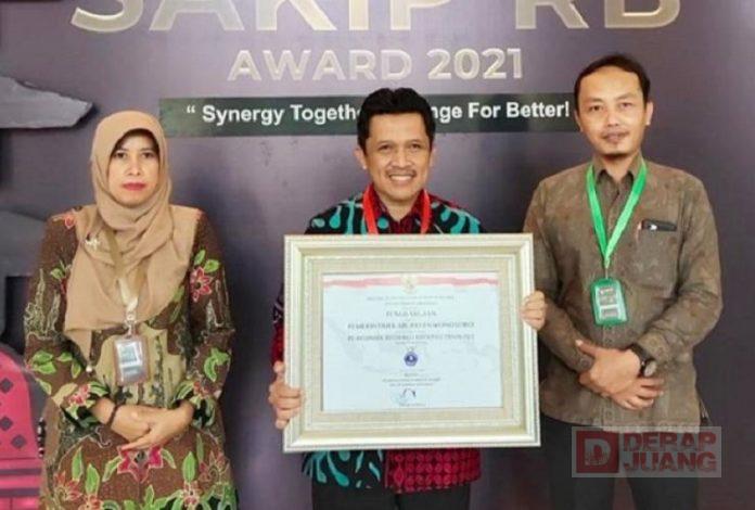 Kabupaten Wonosobo – Pemerintah Kabupaten (Pemkab) Wonosobo menerima penghargaan Sistem Akuntabilitas Kinerja Instansi Pemerintah (SAKIP) dan Reformasi Birokrasi (RB) Award Tahun 2021 dari Kementerian Pendayagunaan Aparatur Negara dan Reformasi Birokrasi (KemenpanRB), Rabu (6/4/2022).