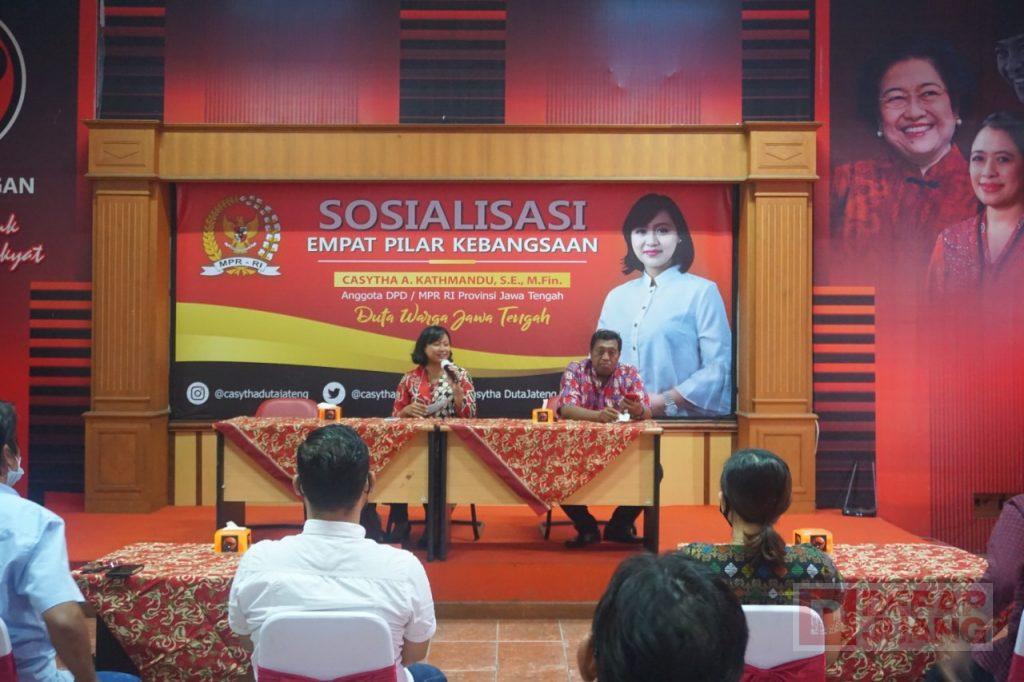 Selanjutnya, Duta Warga Jawa Tengah yang akrab disapa Casytha ini menjelaskan Empat Pilar yang terdiri dari Pancasila, UUD 1995, NKRI, dan Bhineka Tunggal Ika itu disebut juga fondasi atau dasar yang menentukan kokohnya bangunan negara.