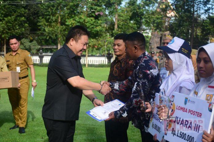 Kota Salatiga – Ketua DPRD Kota Salatiga Dance Ishak Palit, M.Si mengikuti apel luar biasa yang diselenggarakan dalam rangka peringaran Hari Anti Korupsi Sedunia (HAKORDIA) tahun 2023, di Halaman Kantor Wali Kota, Senin (11/12/2023).