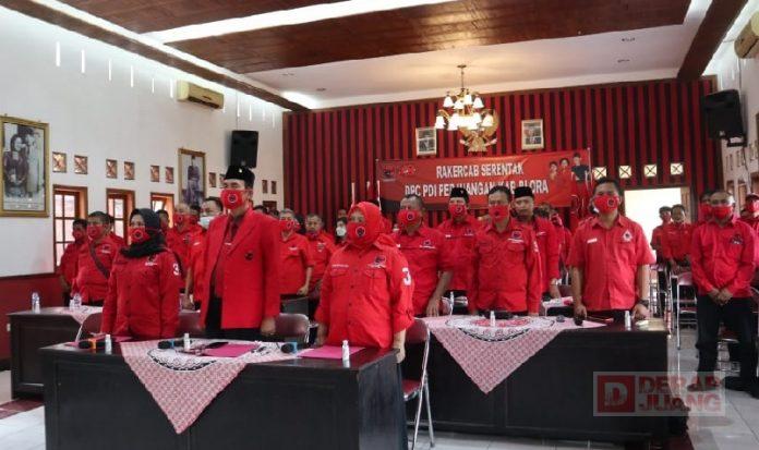 Kabupaten Blora – DPC PDI Perjuangan Kab. Blora mengikuti Rapat Kerja Cabang (Rakercab) serentak se-Jawa Tengah yang diadakan oleh DPD PDI Perjuangan Jawa Tengah secara daring, Sabtu (29/5/2021).