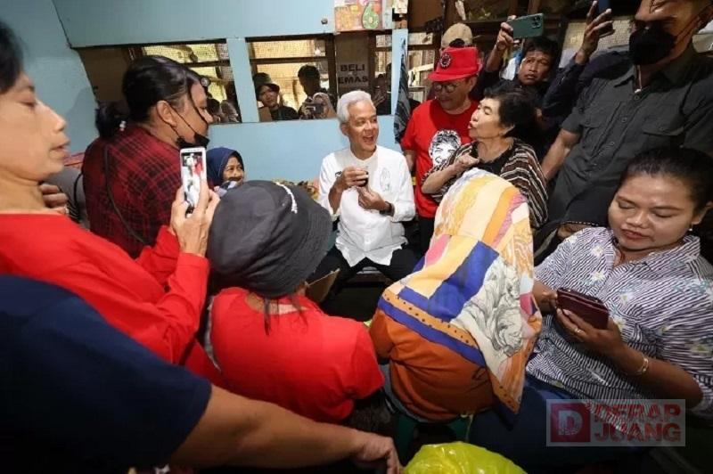 Kabupaten Wonogiri – Calon presiden (Capres) nomor urut 3, Ganjar Pranowo mendengarkan keluhan pedagang dan pembeli terkait harga kebutuhan pokok yang melambung tinggi. Hal itu dilakukan Ganjar saat blusukan ke Pasar Kota Wonogiri, Jumat (29/12/2023).