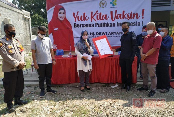 Kabupaten Tegal – Anggota Komisi IX DPR RI Fraksi PDI Perjuangan, Dr. Dewi Aryani kembali menggelar kegiatan kemasyarakatan diantaranya sosialisasi Gerakan Masyarakat Hidup Sehat (Germas), gemar herbal, serta melakukan peresmian Yayasan Difabel Tegal Inklusi di Kabupaten Tegal, Jumat (30/7/2021).