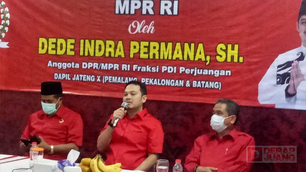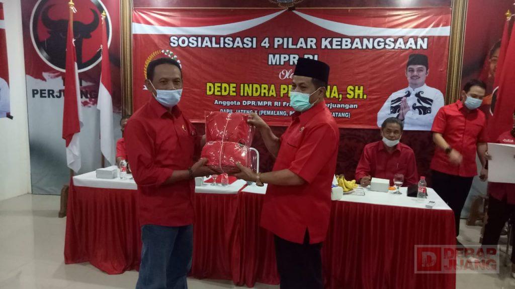 Kabupaten Pemalang – Anggota DPR RI Dapil Jateng X yang meliputi Batang, Pekalongan, Pekalongan Kota dan Pemalang, Dede Indra Permana, S.H. atau yang biasa disapa Mas Dede melaksanakan Sosialisasi 4 Pilar Kebangsaan dengan Struktural PDI Perjuangan Kabupaten Pemalang di Aula Kantor DPC PDI Perjuangan, Kamis (15/10/2020).