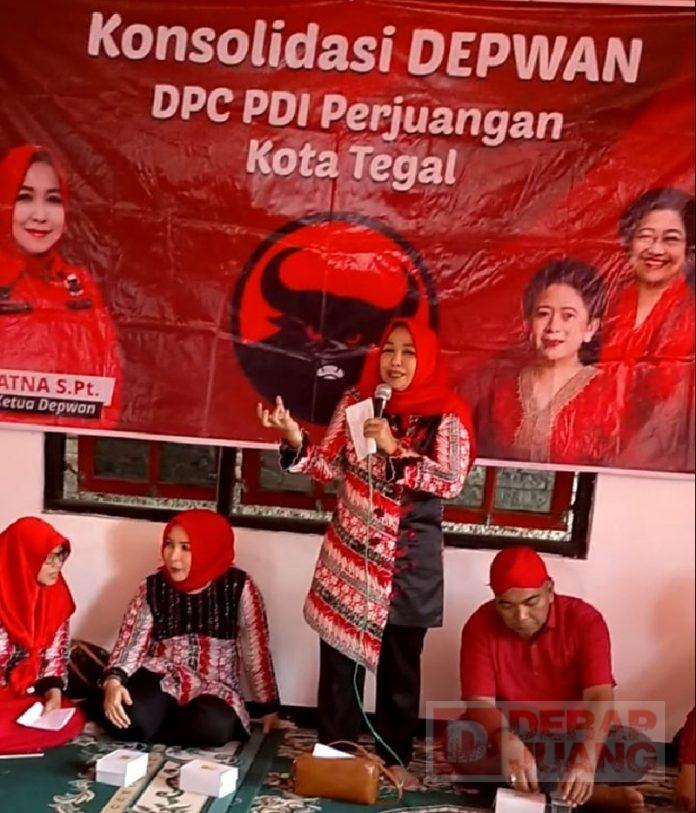 Kota Tegal – Ratusan kader Departemen Wanita (Depwan) PDI Perjuangan Kota Tegal yang dikomandoi oleh Hj Ratna Edy Suripno kembali gelar konsolidasi di Kantor PAC PDI Perjuangan Kecamatan Tegal Selatan pada Kamis (24/03/2022).