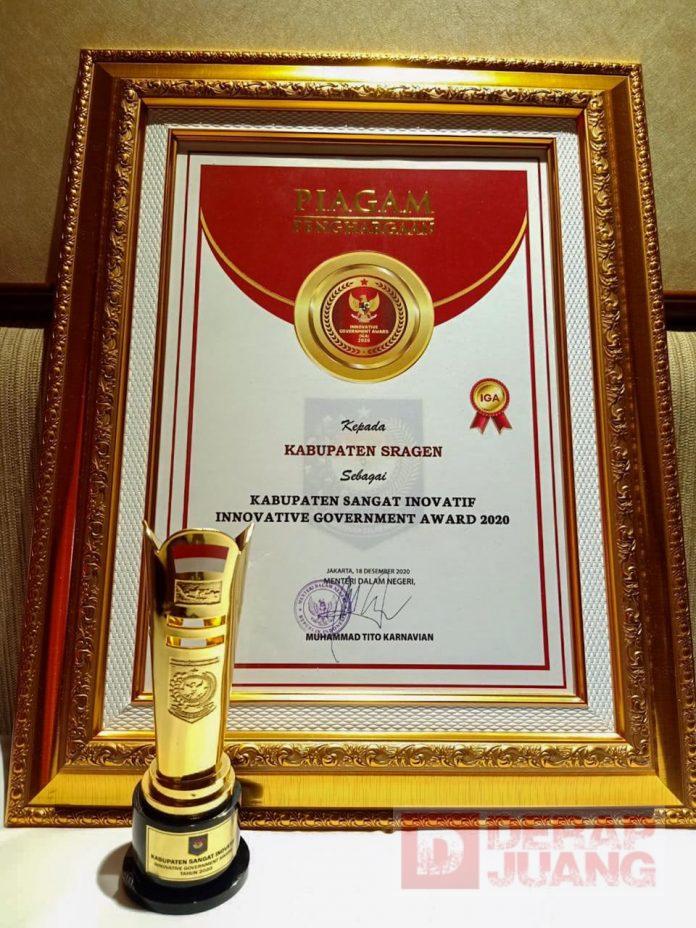 Selain itu, pada penghujung tahun ini Mbak Yuni mampu membawa Sragen meraih penghargaan sebagai Kabupaten Sangat Inovatif dari Kementerian Dalam Negeri. Adapun penghargaan ini diperoleh dalam perhelatan Innovative Government Award (IGA) 2020.