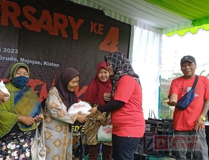 Pembagian paket sembako kepada masyarakat kurang mampu yang dilakukan oleh Diah Eva Subadra di lapangan Mojayan tersebut adalah dalam rangka menyemarakkan Anniversary Ke-4 Kelompok Relawan ‘Benteng Kota’ yang merupakan organisasi para kader militan PDI Perjuangan di wilayah Dapil 1 Klaten, Minggu (26/2/2023).