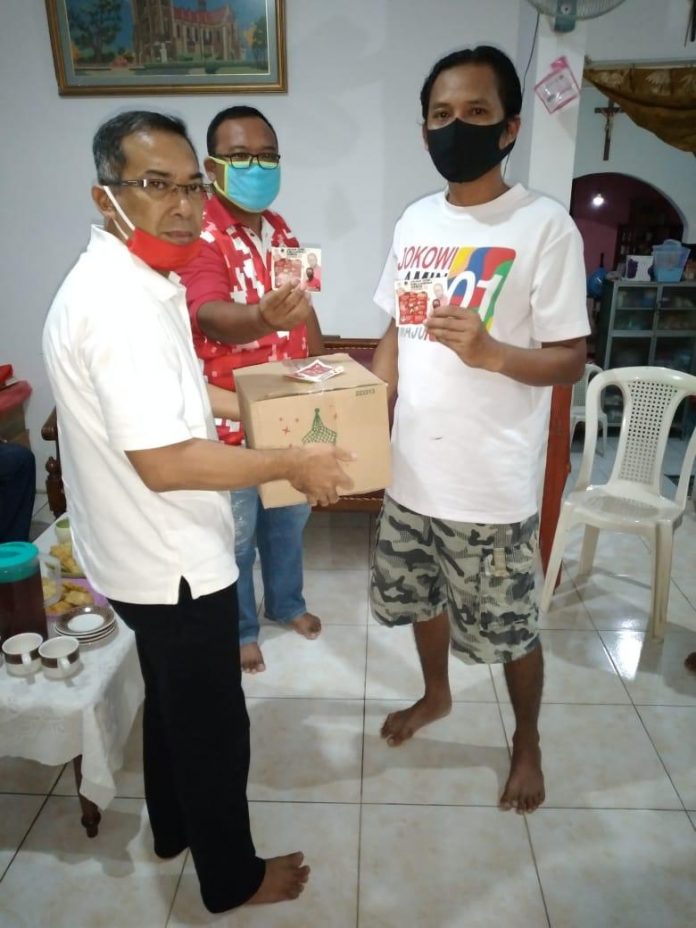 Mas Hari selaku Wakil Ketua DPC PDI Perjuangan Karanganyar bidang Hukum dan advokasi turun langung ke lingkungan di sekitar Desa Ngringo bersama dengan kader-kader Partai setempat untuk membantu proses pendistribusian sembako.