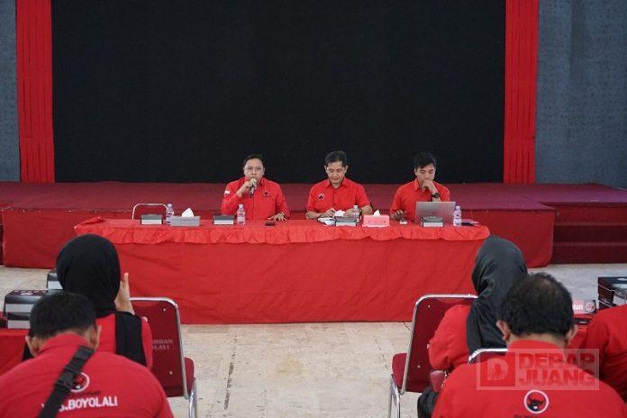 Giat tersebut berlangsung di Gedung Panti Marhaen DPC Boyolali. Selain untuk menyampaikan laporan hasil pembentukan timses, KSB PAC se-Kabupaten Boyolali juga mendapat arahan sekaligus instruksi dari Ketua DPC.