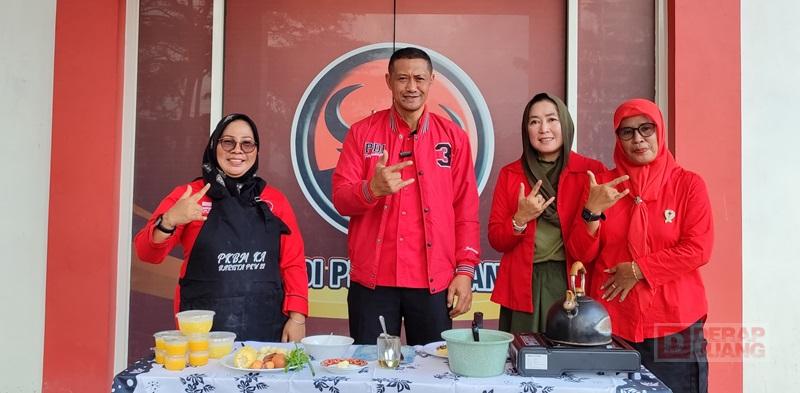 Foto: H Nuryanto Ketua DPC (tengah) didampingi Restu Sayekti Bendahara DPC dan Nurhalimah(kanan) Wahyuningsih (kiri) Wakil Ketua DPC saat mengikuti lomba memasak memperingati Hari Kartini dan Bulan Bung Karno 2025 di Panti Marhaen. Sabtu 26/04/2025