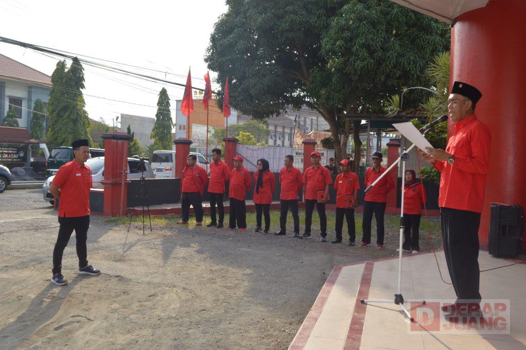 Kabupaten Cilacap – Memperingati Hari Lahir Pancasila 1 Juni 2024, Dewan Pimpinan Cabang (DPC) PDI Perjuangan Cilacap menggelar upacara bendera di halaman kantor DPC PDI Perjuangan Cilacap, Sabtu (01/06/2024). Bertindak sebagai pembina upacara Sekretaris DPC PDI Perjuangan Cilacap Sutarman dan inspektur upacara Sekretaris Pengurus Anak Cabang (PAC) Nusawungu Sodeli.
