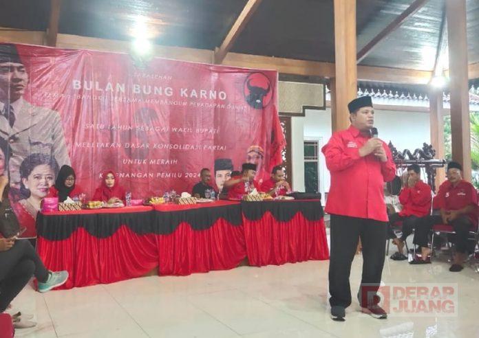 Ketua DPC PDI Perjuangan Pekalongan, Riswadi dalam arahannya menyampaikan acara tersebut selain Sarasehan Bulan Bung Karno dan satu tahun jabatan Wakil Bupati, juga sekaligus penguatan mesin Partai dengan melakukan konsolidasi dalam persiapan tempur menghadapi Pemilu 2024.