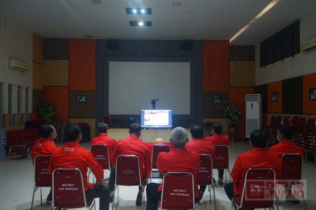 Sambil mengikuti Zoom Meeting, Ketua dan Pengurus DPC PDI Perjuangan juga merefleksi histori PDI Perjuangan Kab. Boyolali dari awal perjuangan hingga mencapai kemenangan berbagai Pemilu hingga kemengan mutlak Pilkada Kab. Boyolali 2020 kemarin.
