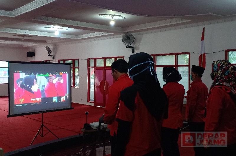 Kegiatan diawali dengan mengikuti webinar DPP Partai secara serentak, dan dilanjutkan dengan pemotongan Tumpeng sebagai rasa syukur kepada karunia Tuhan YME. Dipimpin oleh Ketua DPC PDI Perjuangan Kab. Demak, Fahrudin Bisri Slamet, giat ini turut dihadiri oleh Cabup Demak terpilih, dr. Hj. Eisti’anah beserta struktural DPC hingga Fraksi PDI Perjuangan Kab. Demak.