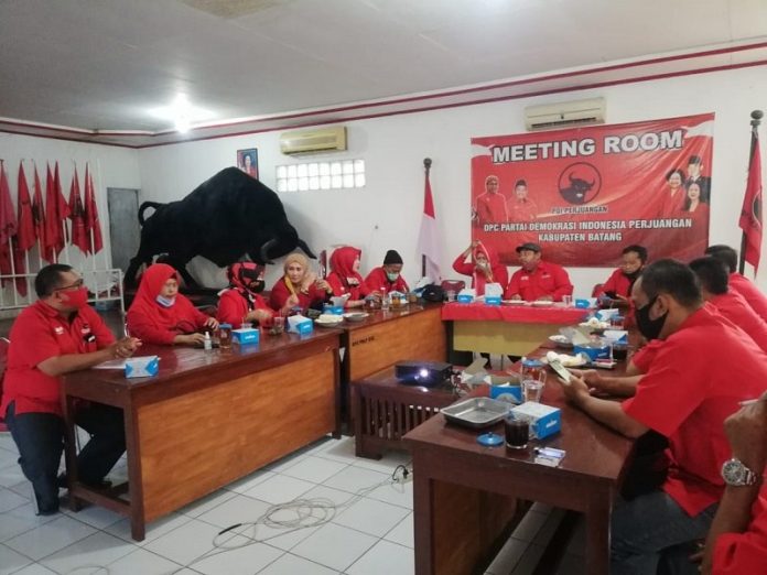 Kabupaten Batang – Menindaklanjuti PP Nomor 09 Tahun 2019 tentang Konsolidasi Partai Demokrasi Indonesia Perjuangan melalui Pembentukan Pengurus Anak Cabang (PAC), DPC PDI Perjuangan Kab. Batang menyelenggarkan Rapat Pleno membahas agenda penyusunan struktur dan komposisi Partai di tingkat PAC. Kegiatan yang dihadiri oleh 15 pengurus Fungsionaris DPC PDI Perjuangan Kab. Batang, menindaklanjuti usulan nama calon Ketua PAC yang dihasilkan melalui Musyawarah Ranting (Musran). Kegiatan tersebut dilaksanakan di Kantor DPC PDI Perjuangan Kab. Batang, Senin (31/8/2020).