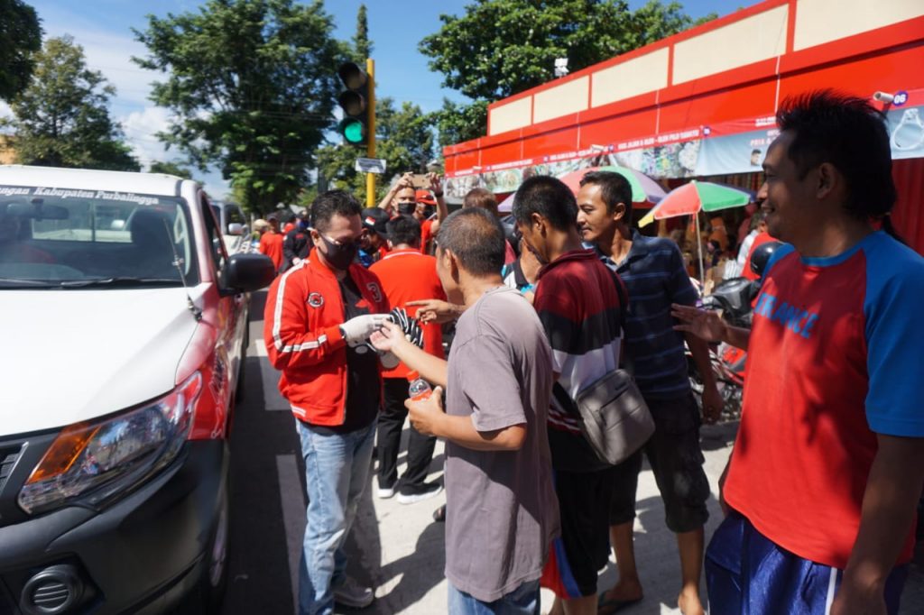 Kabupaten Purbalingga – Dewan Pimpinan Cabang PDI Perjuangan Kabupaten Purbalingga menggelar bakti sosial peduli Covid-19, (12/4/2020). Kegiatan tersebut dilaksanakan di wilayah Kelurahan Purbalingga Lor, Kecamatan Purbalingga.