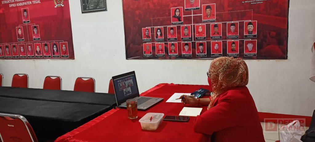 Bentuk komitmen tegak lurus terhadap Instruksi Partai, DPC PDI Perjuangan Kab. Tegal mengikuti Rangkaian webinar tersebut, yang diikuti oleh Sekretaris DPC PDI Perjuangan Kab.Tegal, Endang Suprapti.