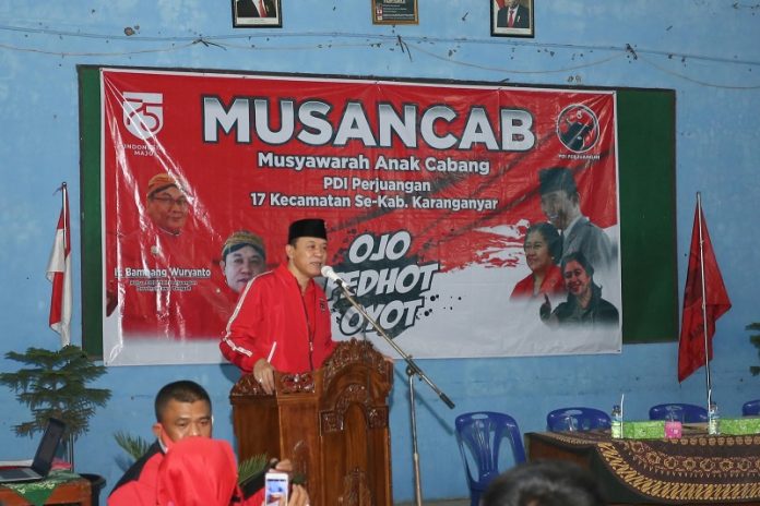 Kabupaten Karanganyar – DPC PDI Perjuangan Kab. Karanganyar memperoleh mandat dari DPD PDI Perjuangan Jawa Tengah untuk melaksanakan Musyawarah Anak Cabang (Musancab) di seluruh kecamatan yang berada di Kab. Karanganyar, termasuk Kecamatan Kebakkramat. Kegiatan Musancab PAC PDI Perjuangan Kecamatan Kebakkramat yang dibuka oleh Ketua DPC PDI Perjuangan Kab. Karanganyar, Bagus Selo, dilaksanakan di Gedung Serbaguna Kelurahan Kebakkramat.