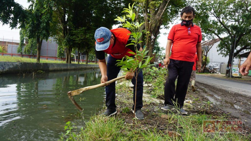 Kabupaten Kudus – DPC PDI Perjuangan Kab. Kudus bersama seluruh elemen Partai PDI Perjuangan lakukan gerakan bersih sungai dan tanam pohon di Desa Tanjung Karang, Jati, Kab. Kudus, Minggu (21/2/2021).