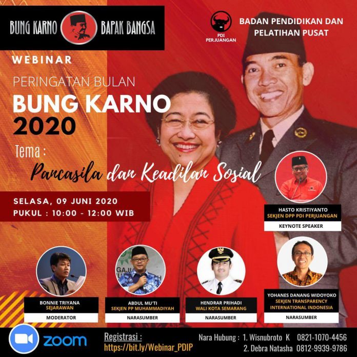 Webinar tersebut dipimpin oleh Ketua Panitia Bulan Bung Karno DPP PDI Perjuangan, yakni Djarot Saiful Hidayat. Kegiatan ini mendiskusikan beberapa topik mengenai penerapan nilai-nilai Pancasila yang merupakan buah pemikiran Bung Karno dalam menghadapi kondisi Bangsa ini dalam wabah Covid-19.