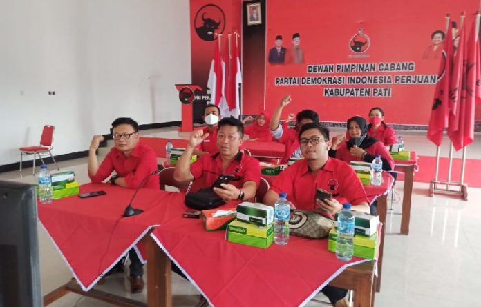 Kabupaten Pati – DPC PDI Perjuangan Kab. Pati mengikuti Webinar yang diadakan Badan Bantuan Hukum dan Advokasi Rakyat Pusat Partai Demokrasi Indonesia Perjuangan (BBHAR Pusat-PDI Perjuangan) via Zoom, Rabu (9/9/2020).
