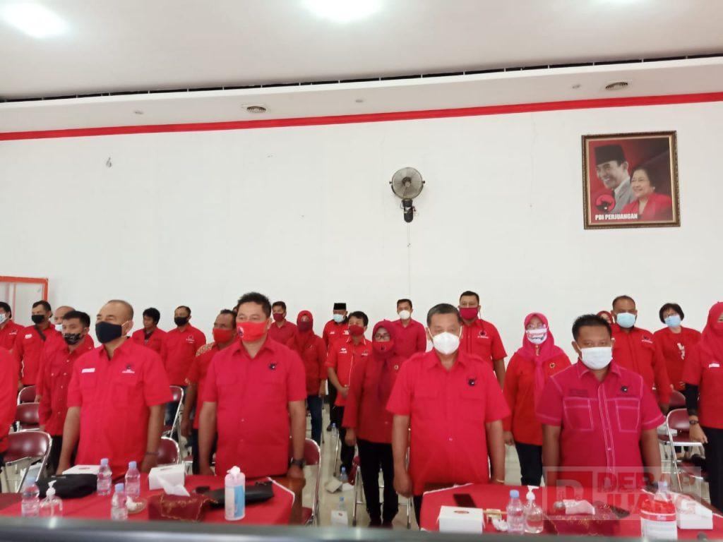 Kabupaten Pati – DPC PDI Perjuangan Kab. Pati ikut serta memeriahkan HUT PDI Perjuangan ke-48 yang dilangsungkan di Kantor DPC PDI Perjuangan Kab. Pati dengan melaksanakan Zoom Meeting dan bagi Tumpeng, Minggu (10/1/2021).