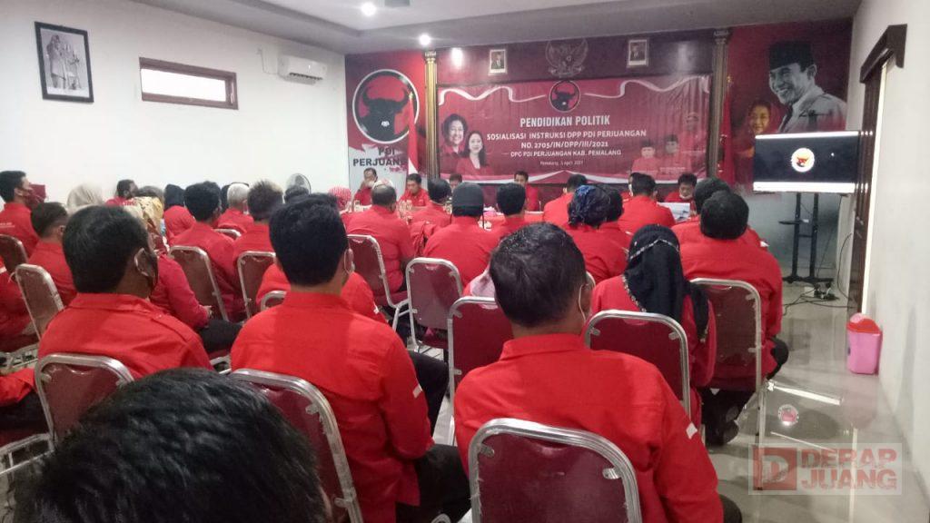 Kabupaten Pemalang – DPC PDI Perjuangan Kab. Pemalang selenggarakan pendidikan politik berupa sosialisasi surat DPP Nomor 2705/IN/DPP/III/2021. Agenda membahas 3 hal yaitu rencana Rakercab, penyusunan program kerja oleh Wakil Ketua Bidang DPC, serta sosialisasi persiapan pelaksanaan Diklat Kader Pratama bagi seluruh PAC se Kab. Pemalang.