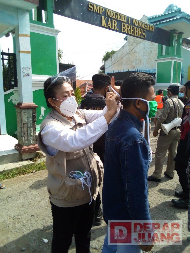 Setelah di lokasi pertama selesai, kegiatan dilanjutkan di lokasi kedua. Kegiatan tersebut dilaksanakan di Pantura Brebes, tepatnya di depan SMP Negeri 1 Wanasari Kab. Brebes. Pada kegiatan operasi di tempat tersebut juga ditemukan beberapa masyarakat yang tidak memakai masker yang kemudian petugas kembali menindak tegas, serta memberi masker kepada pelanggar.