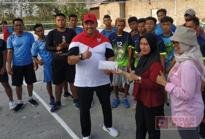 Kabupaten Grobogan – Ketua Fraksi PDI Perjuangan DPRD Kabupaten Grobogan, Heru Santosa dengan antusias menghadiri gelaran turnamen bola voli di Desa Cingkrong, Senin (11/09/2023) di lapangan voli Desa Cingkrong.