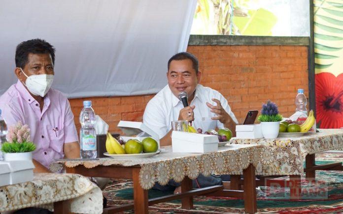 Kabupaten Kudus – Ketua DPRD Kab. Kudus, Masan memberikan arahan dalam kegiatan Kopdar dan FGD yang dilaksanakan oleh BLK di Warung Raja Lele Desa Prambatan Kidul, Kec. Jati, Minggu (03/10/2021).